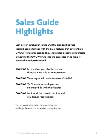 OWOW BRAND · Sales Training Guide · International Pool Group 2