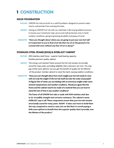 FEATURE BENEFIT NARRATIVE OWOW hot tubs are built on a solid foundation designed to prevent water,