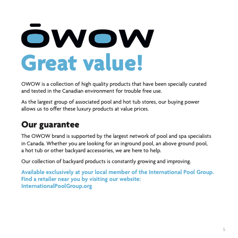 The OWOW brand is supported by the largest network of pool and spa specialists