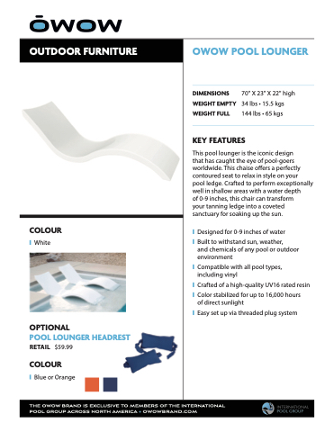 OUTDOOR FURNITURE OWOW POOL LOUNGER