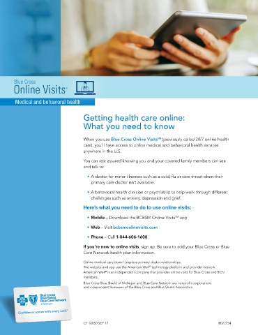 When you use Blue Cross Online Visits (previously called 24/7 online health