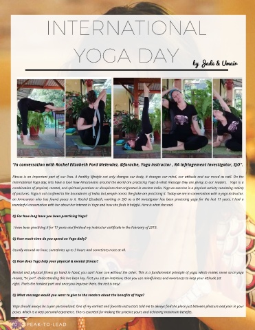 of postures. Yoga is not confined to the boundaries of India, but people across the globe are practicing it. Today we are in conversation with a yoga instructor,