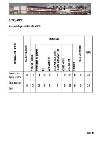 PROGRAMAS DE ESTUDIO EXAMEN ORDINARIO PRIMEROS PUESTOS DEPORTISTAS CALIFICADOS DISCAPACITADOS DE LAS FUERZAS ARAMADAS Y PNP TRASLADO INTERNO TOTAL