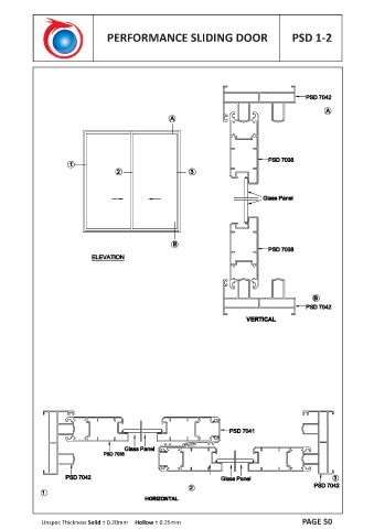 PERFORMANCE SLIDING DOOR PSD 1-2 Unspec Thickness Solid ± 0.20mm Hollow ± 0.25mm PAGE 50