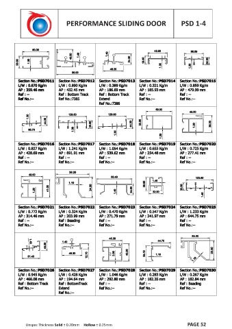 PERFORMANCE SLIDING DOOR PSD 1-4 Unspec Thickness Solid ± 0.20mm Hollow ± 0.25mm PAGE 52