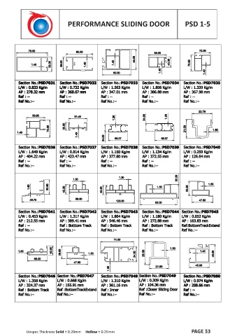 PERFORMANCE SLIDING DOOR PSD 1-5 Unspec Thickness Solid ± 0.20mm Hollow ± 0.25mm PAGE 53