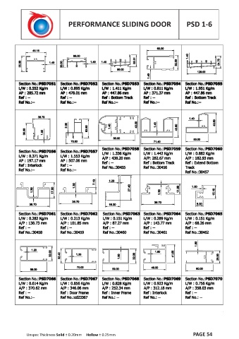 PERFORMANCE SLIDING DOOR PSD 1-6 Unspec Thickness Solid ± 0.20mm Hollow ± 0.25mm PAGE 54
