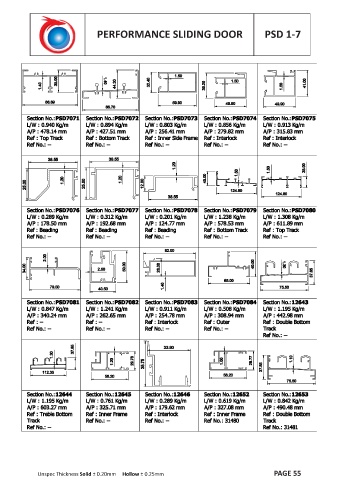 PERFORMANCE SLIDING DOOR PSD 1-7 Unspec Thickness Solid ± 0.20mm Hollow ± 0.25mm PAGE 55