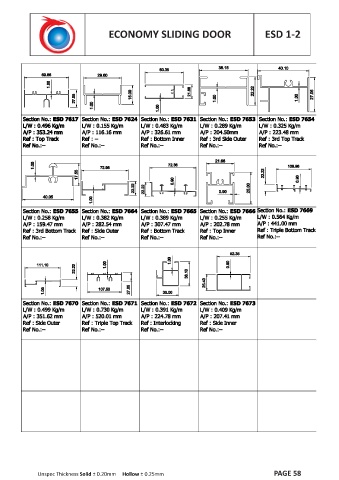 ECONOMY SLIDING DOOR ESD 1-2 Unspec Thickness Solid ± 0.20mm Hollow ± 0.25mm PAGE 58