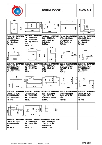SWING DOOR SWD 1-1 Unspec Thickness Solid ± 0.20mm Hollow ± 0.25mm PAGE 63