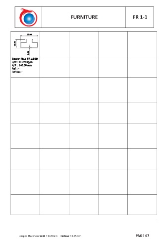 FURNITURE FR 1-1 Unspec Thickness Solid ± 0.20mm Hollow ± 0.25mm PAGE 67