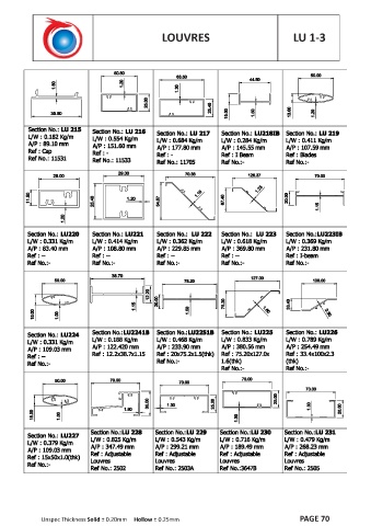 LOUVRES LU 1-3 Unspec Thickness Solid ± 0.20mm Hollow ± 0.25mm PAGE 70