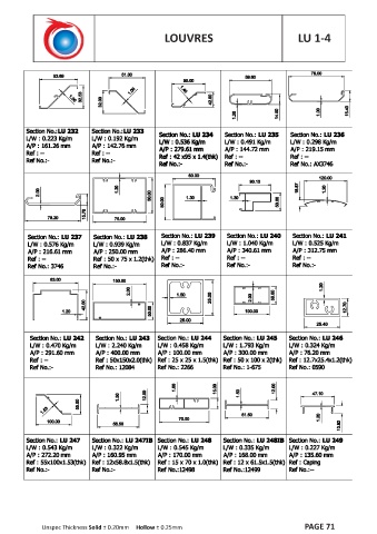 LOUVRES LU 1-4 Unspec Thickness Solid ± 0.20mm Hollow ± 0.25mm PAGE 71