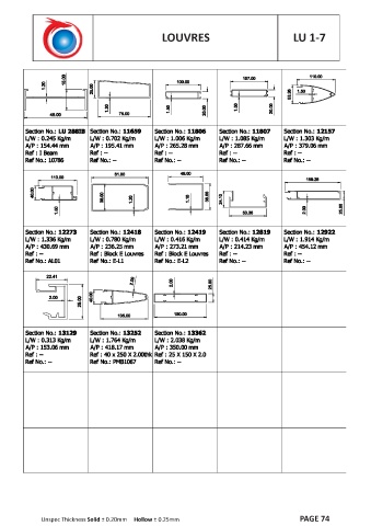 LOUVRES LU 1-7 Unspec Thickness Solid ± 0.20mm Hollow ± 0.25mm PAGE 74
