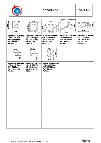 CONVEYOR CON 1-1 Unspec Thickness Solid ± 0.20mm Hollow ± 0.25mm PAGE 78