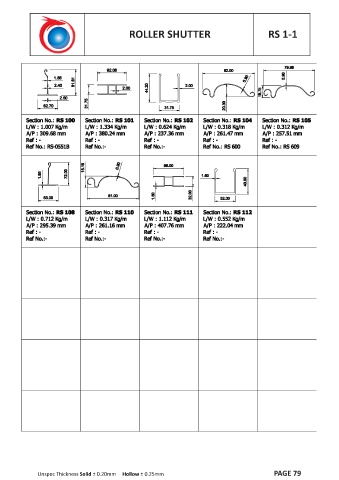 ROLLER SHUTTER RS 1-1 Unspec Thickness Solid ± 0.20mm Hollow ± 0.25mm PAGE 79