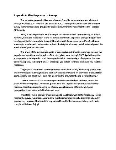 the survey responses throughout the book. My specific aim was to let the voices of actual black