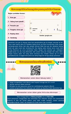 kuning. Besarnya api untuk pemanasan diatur dengan kran penyalur gas, sedangkan