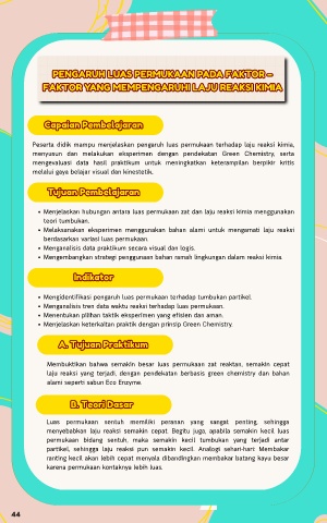 laju reaksi yang terjadi, dengan pendekatan berbasis green chemistry dan bahan