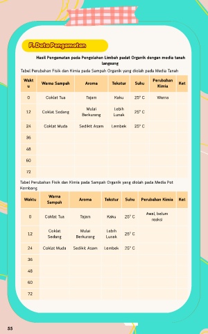 Tabel Perubahan Fisik dan Kimia pada Sampah Organik yang diolah pada Media Tanah