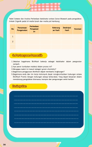 Tabel Catatan dan Analisa Perbedaan katalisator antara Cairan Biowash pada pengolahan