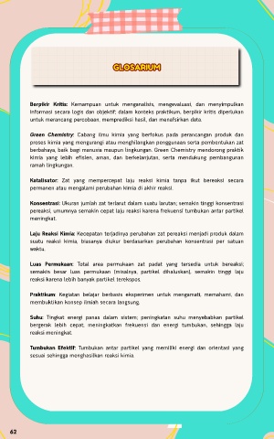 berbahaya, baik bagi manusia maupun lingkungan. Green Chemistry mendorong praktik