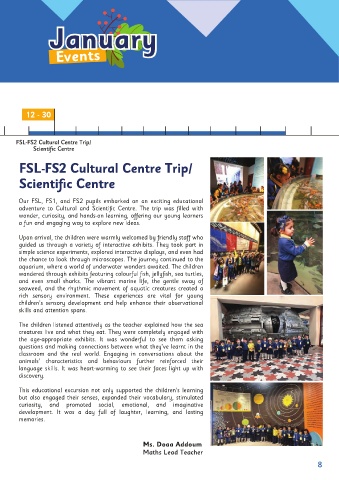 adventure to Cultural and Scienti c Centre. The trip was lled with