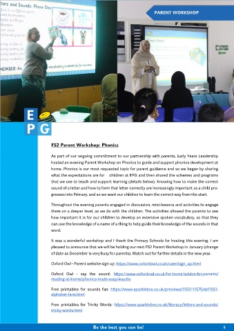 hosted an evening Parent Workshop on Phonics to guide and support phonics development at