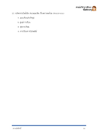 ส ยย อว ช ก รศ กษ 20. นวัตกรรม นข อ ด สนอง นวค ด ร องคว มพร อม (Readiness) ก. บบ ร ยนส ร จร ป ข. ศ นย ก ร ร ยน ค. ช ดก ร ร ยน ง. ก ร ร ยนท ง ปรษณ ย สงวนล ขส ทธ 55