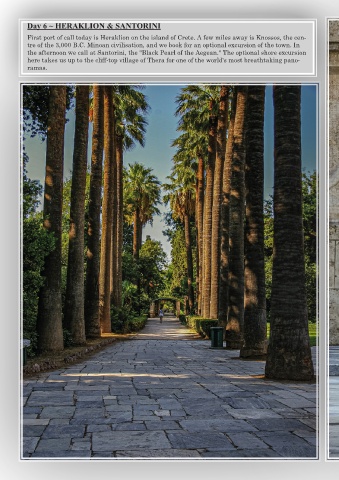 First port of call today is Heraklion on the island of Crete. A few miles away is Knossos, the cen-