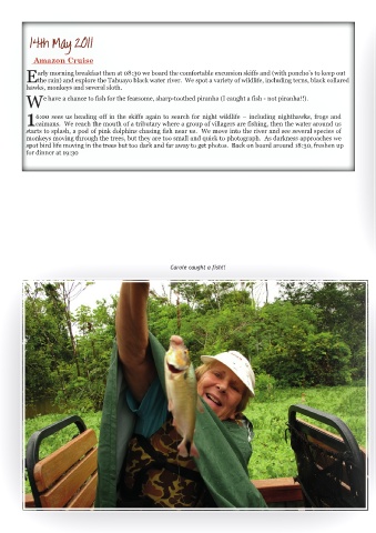 W e have a chance to fish for the fearsome, sharp-toothed piranha (I caught a fish - not piranha!!).