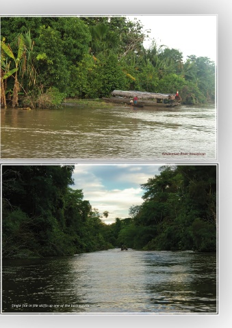 Amazonian River houseboat Single file in the skiffs up one of the backwaters