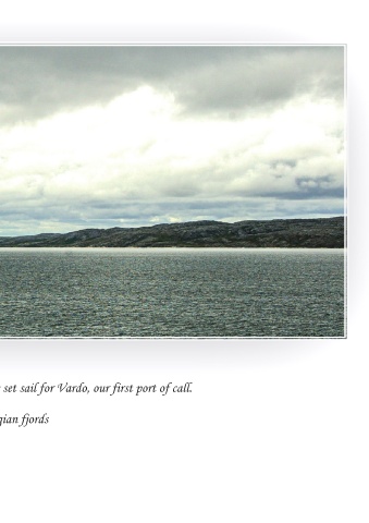 Just time to find our cabin and grab my camera before we set sail for Vardo, our first port of call. Our first glimpse of Norwegian fjords