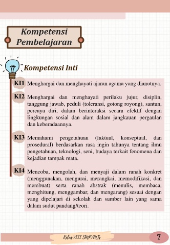 KI1 Menghargai dan menghayati ajaran agama yang dianutnya.