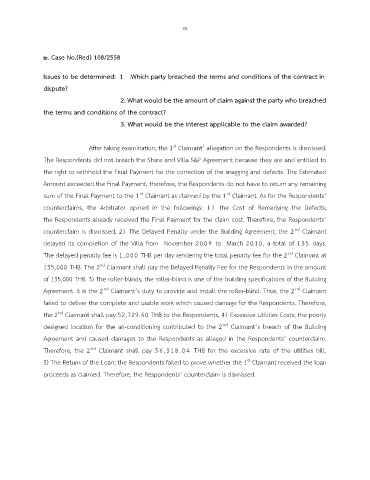 counterclaims, the Arbitrator opined in the followings: 1 ) the Cost of Remedying the Defects;