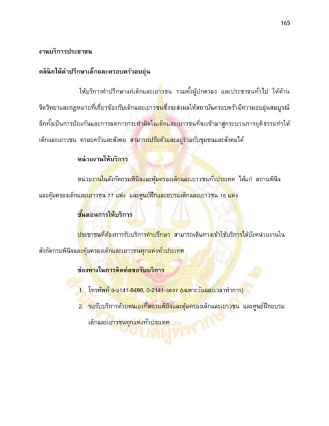 ให้บริการคําปรึกษาแก่เด็กและเยาวชน รวมทั งผู้ปกครอง และประชาชนทั วไป ให้ด้าน