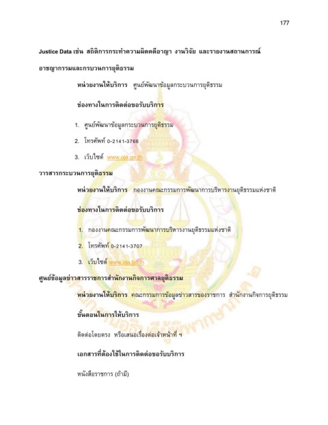 Justice Data เช่น สถิติการกระทําความผิดคดีอาญา งานวิจัย และรายงานสถานการณ์