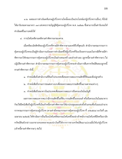 ปฏิบัติตามคําพิพากษา สํานักงานคณะกรรมการคุ้มครองผู้บริโภคจะดําเนินการสืบหาทรัพย์สินของลูกหนี