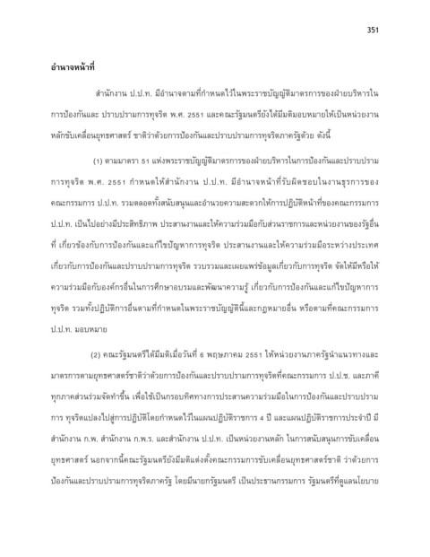 การป้องกันและ ปราบปรามการทุจริต พ.ศ. และคณะรัฐมนตรียังได้มีมติมอบหมายให้เป็นหน่วยงาน