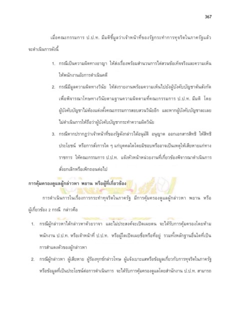 การดําเนินการในเรื องการกระทําทุจริตในภาครัฐ มีการคุ้มครองดูแลผู้กล่าวหา พยาน หรือ