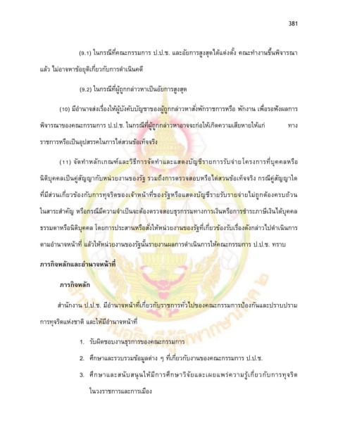 การทุจริตแห่งชาติ และให้มีอํานาจหน้าที