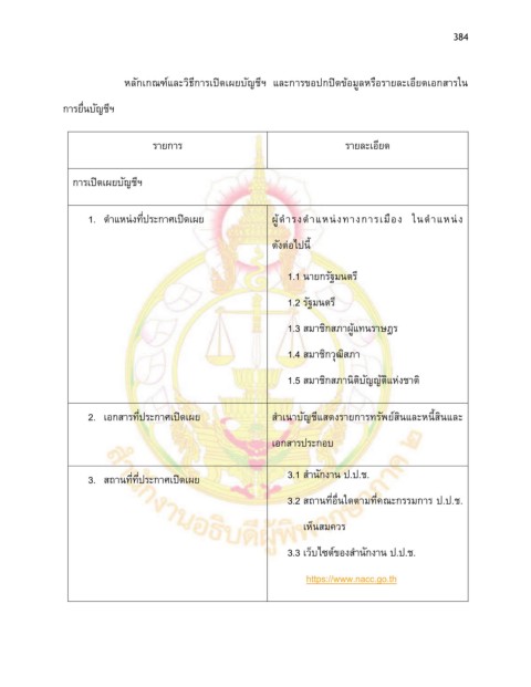 หลักเกณฑ์และวิธีการเปิดเผยบัญชีฯ และการขอปกปิดข้อมูลหรือรายละเอียดเอกสารใน