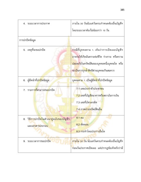 9. ระยะเวลาการขอปกปิด ภายใน วัน นับแต่วันครบกําหนดต้องยื นบัญชีฯ