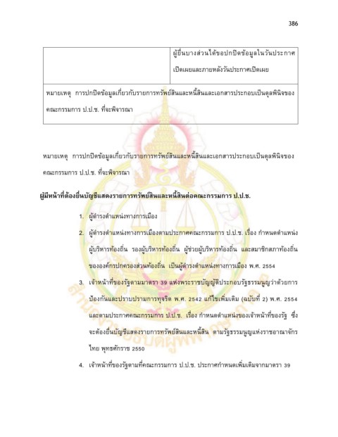 หมายเหตุ การปกปิดข้อมูลเกี ยวกับรายการทรัพย์สินและหนี สินและเอกสารประกอบเป็นดุลพินิจของ