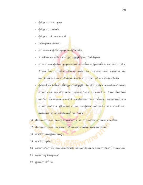 - ผู้ดํารงตําแหน่งอื นตามที มีกฎหมายบัญญัติ เช่น อธิการบดีจุฬาลงกรณ์มหาวิทยาลัย