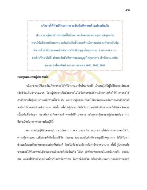 จะต้องใช้เวลาดําเนินคดียาวนาน ดังนั น เพื อให้ผู้ประสบภัยได้รับการชดใช้ค่าเสียหายและได้รับค่าเสียหาย