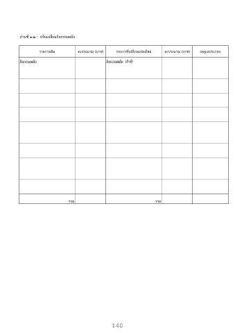 สวนที่ 2.2 : ปรับเปลี่ยนกิจกรรมหลัก รายการเดิม งบประมาณ (บาท) รายการที่เปลี่ยนแปลงใหม งบประมาณ (บาท) เหตุผลประกอบ กิจกรรมหลัก กิจกรรมหลัก (ถามี) รวม รวม 140