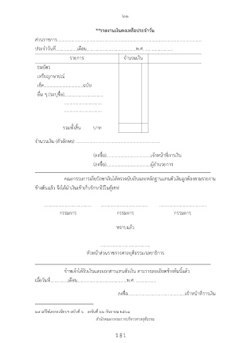 ๒๗ รายงานเงินคงเหลือประจําวัน