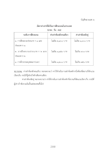 อัตราคาเชาที่พักในการฝกอบรมในประเทศ