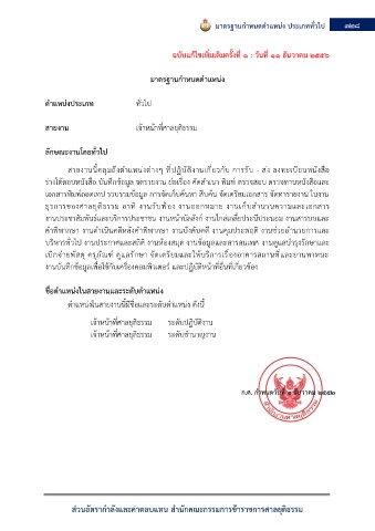 สายงานนี้คลุมถึงตำแหน่งต่างๆ ที่ปฏิบัติงานเกี่ยวกับ การรับ - ส่ง ลงทะเบียนหนังสือ